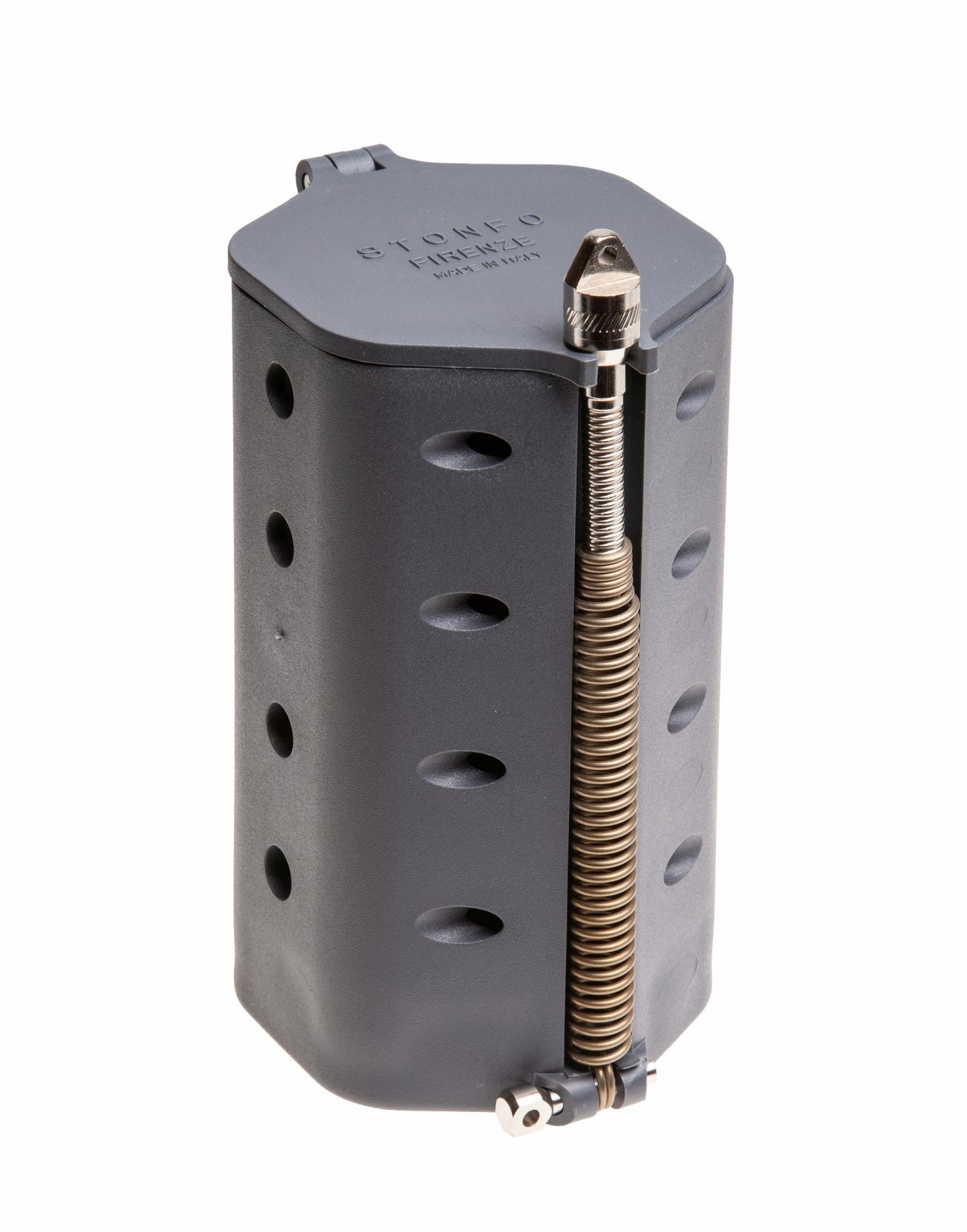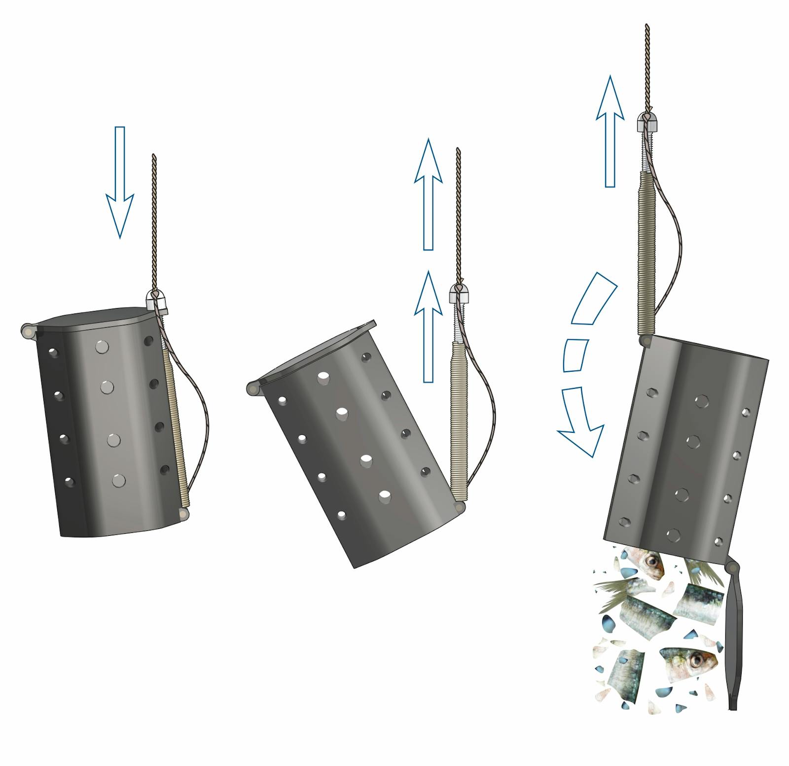 Accurate and efficient boat feeder equipped with adjustment device of the opening strength. Fill the feeder with groundbait, sardines etc.etc., lock the lid and lower it from the boat with a rigid cord to the desired depth. Pull brusquely the cord to open and discharge the feeder.