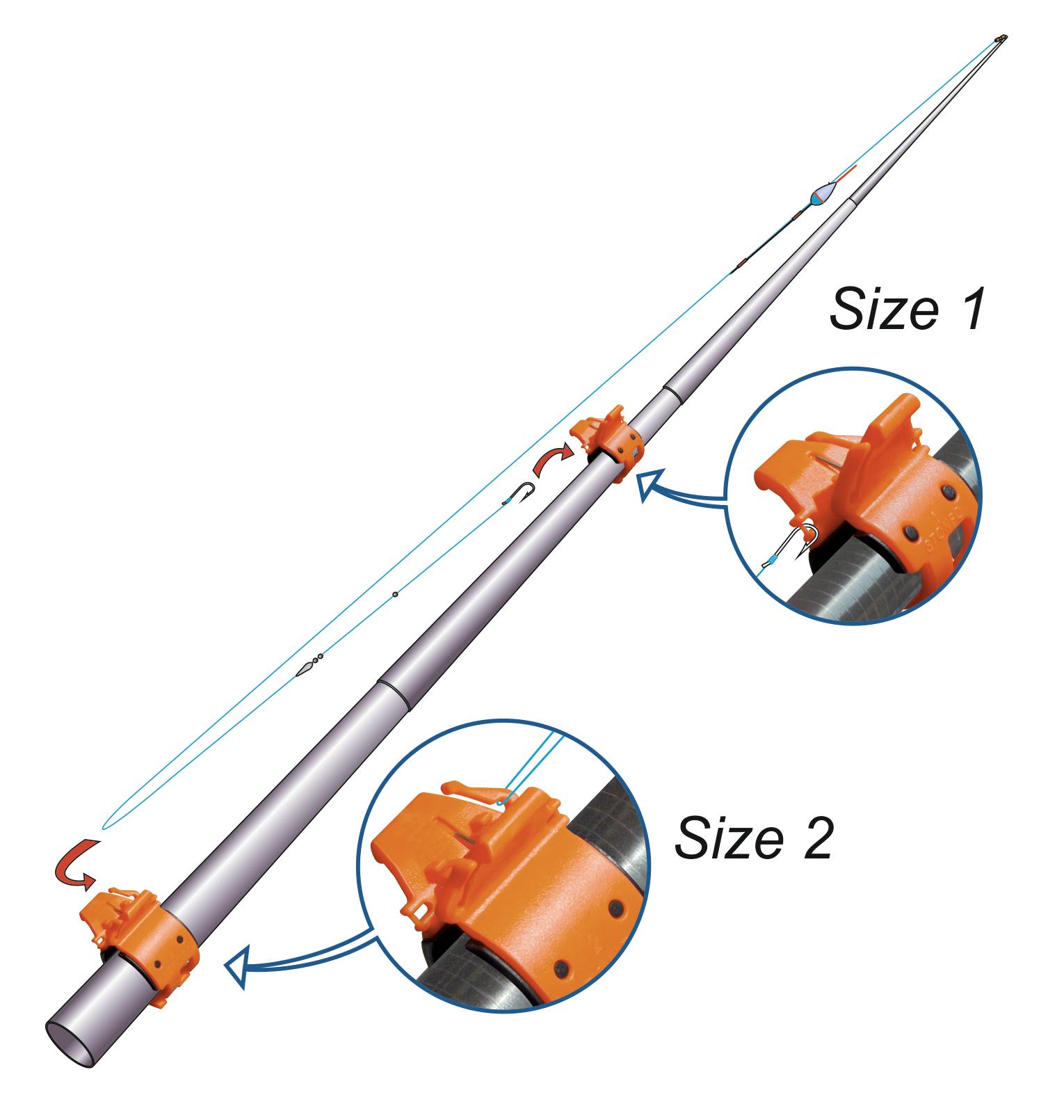 Pole clips with gripper pads, suitable to hold the long line on the roubaisienne pole kit.