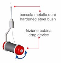 A top quality weighted stainless steel bobbin with quick adjusting disc-drag that allows a perfect thread tension. Tube with very strong hardened steel bush to prevent fraying. Suitable for every size spool.