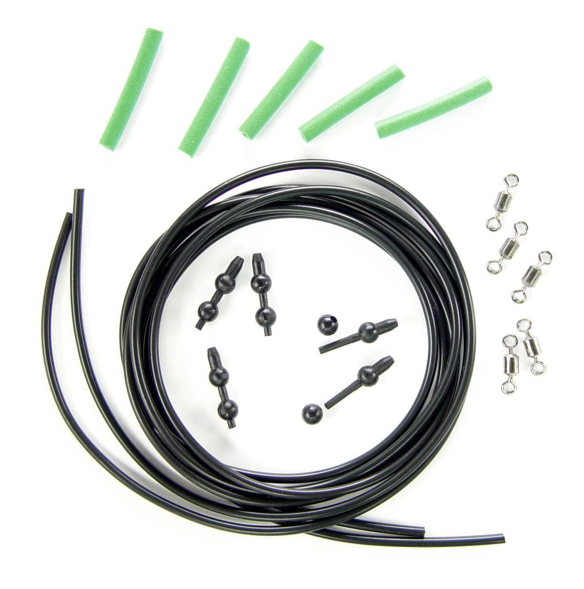Helicopter Kit for 5 rigs including beads, swivels, rubber sleeves and 2 mt anti-tangle tubing. Use the connecting rubber tubing