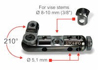 Joint block. It clamps to the vise allowing the positioning of up to four accessories at the same time. Fits on vise stems from 8 mm to 10 mm ( 3/8"). Supplied with 8 mm adaptor bush and allen key.