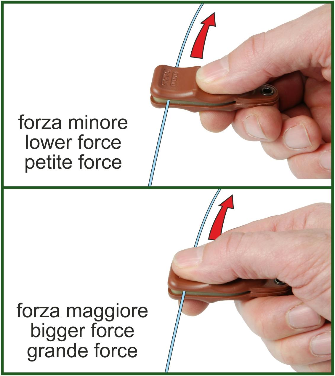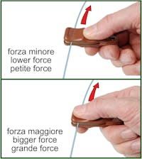 Useful small tool to straighten the leader quickly and safely. It is made of strong plastic material with two special rubber pads inside. Its anatomic shape allows to apply the desired force. Equipped with eyelet to hang it on a tool holder.