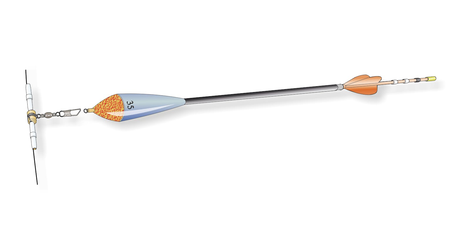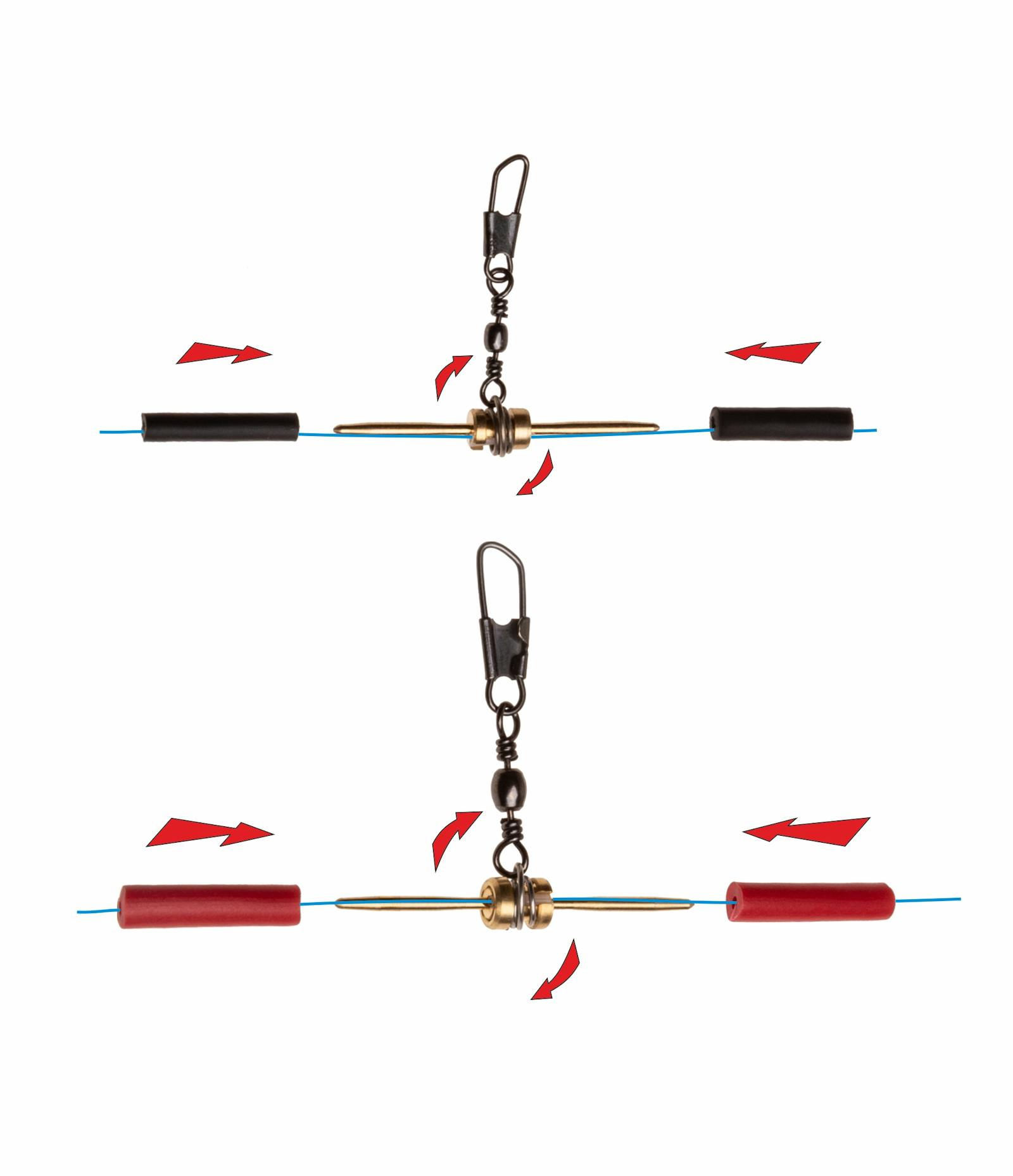 Float-line connector with swivel and snap for wagglers. Supplied with special locking tubes. Rotating freedom reduces any possibility of entanglement.