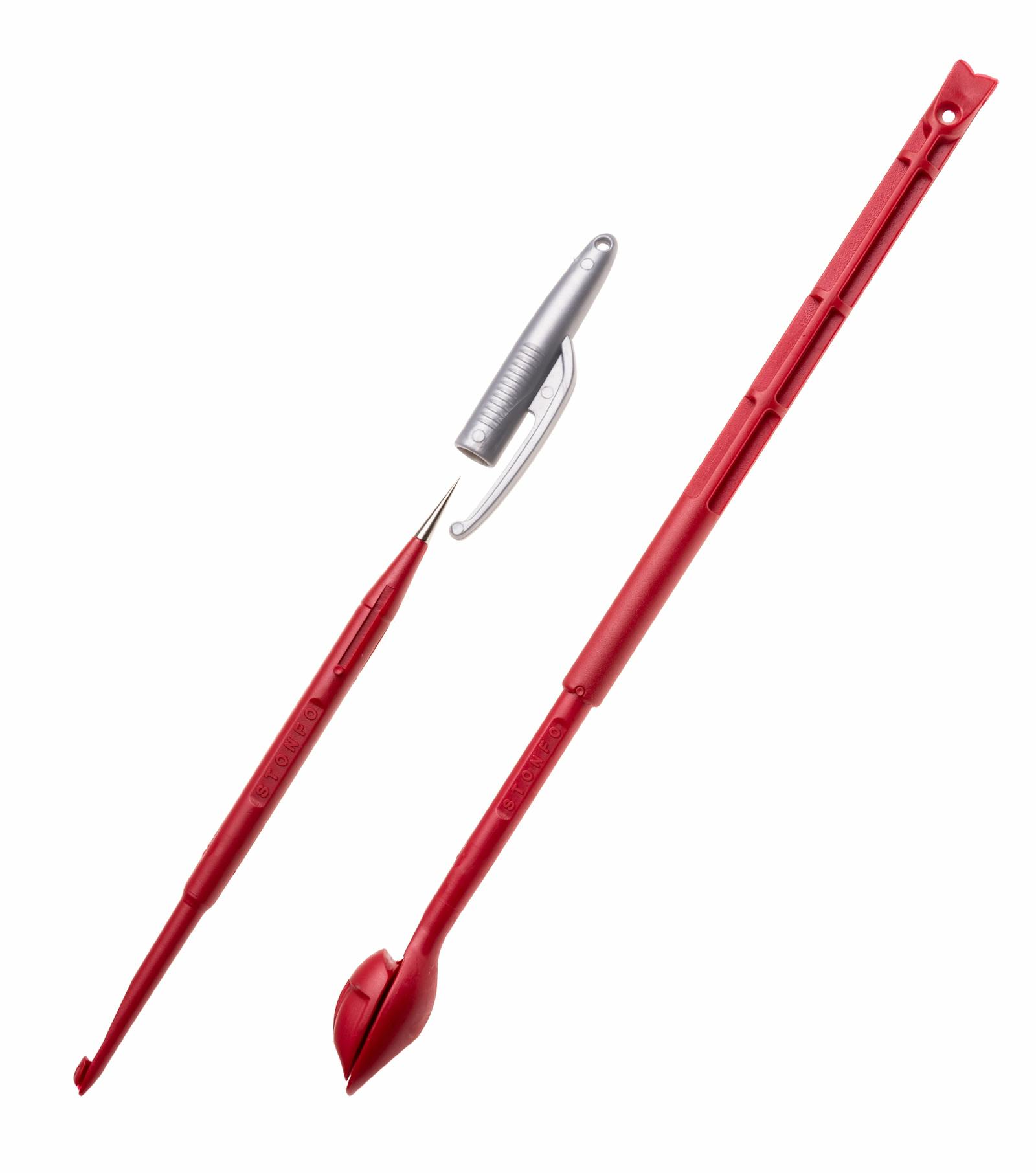 Sea disgorgers, specially designed for sea-fishes and for all those fishes that, once hooked, tend to close the mouth tightly, making difficult the hooking operation. The cuneiform shape of its heads facilitates the mouth opening, allowing a very quick extraction of the hook. The small model, with a very thin head, is ideal for fishes with very small mouth. The large model, thanks to its extension, allows to unhook fishes even when very deeply hooked.