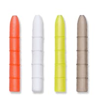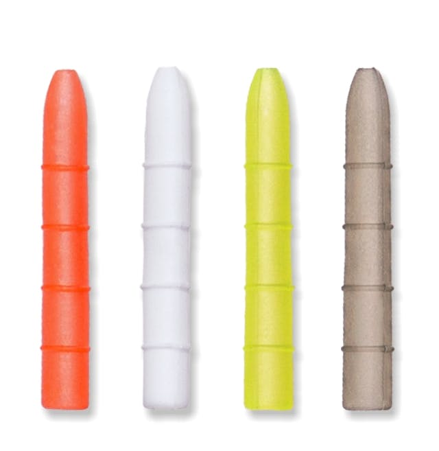 Knot cover tubes with thin thickness and smooth conical end. Ideal for use on swivels, micro-hooks and on any rig where maximum lightness and compactness is required. Equipped with micro-reliefs to make them easier to grip. They can be shortened depending on use. Produced in 3 sizes and 4 colors that allow camouflage or perfect visibility of the knot cover.