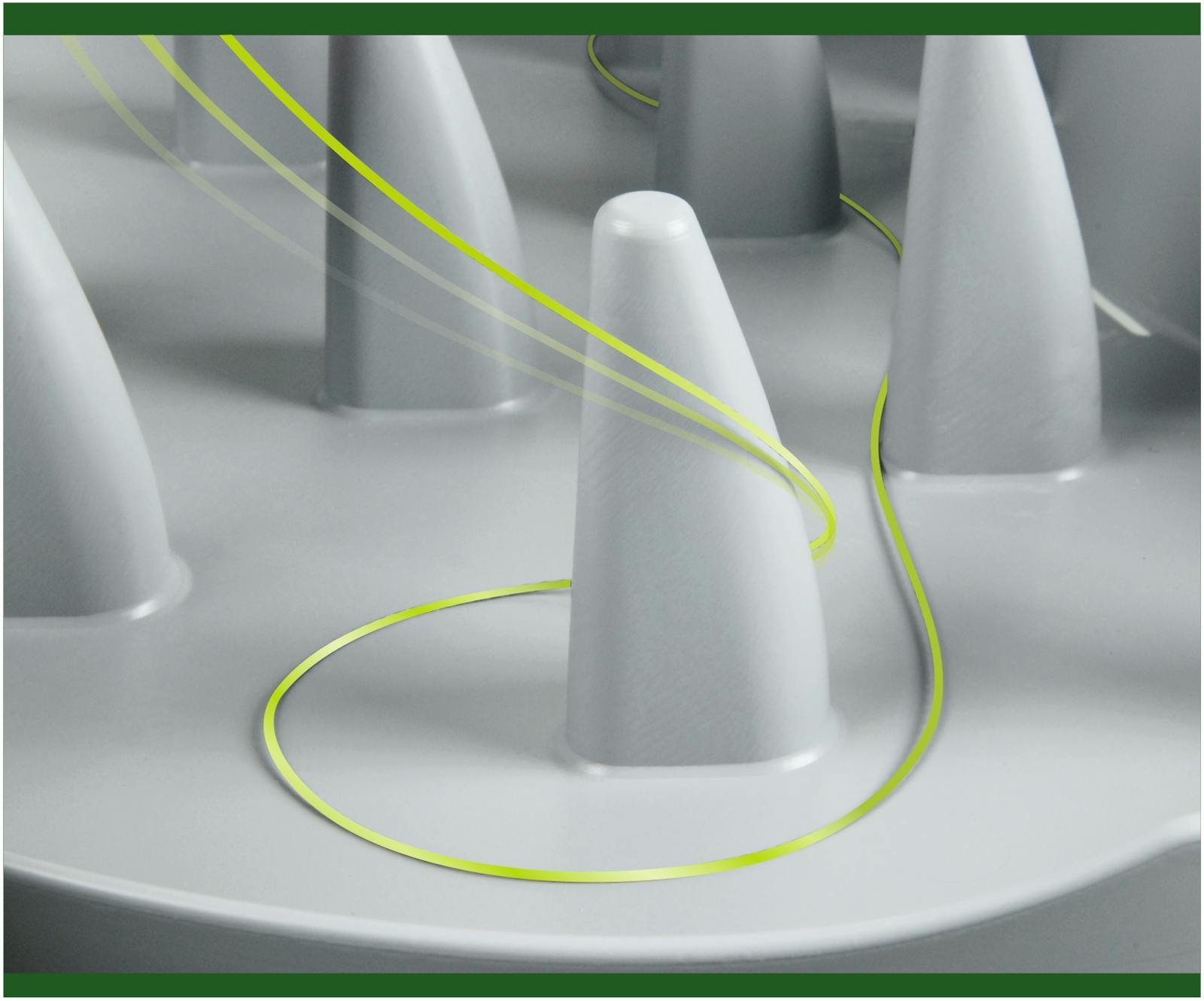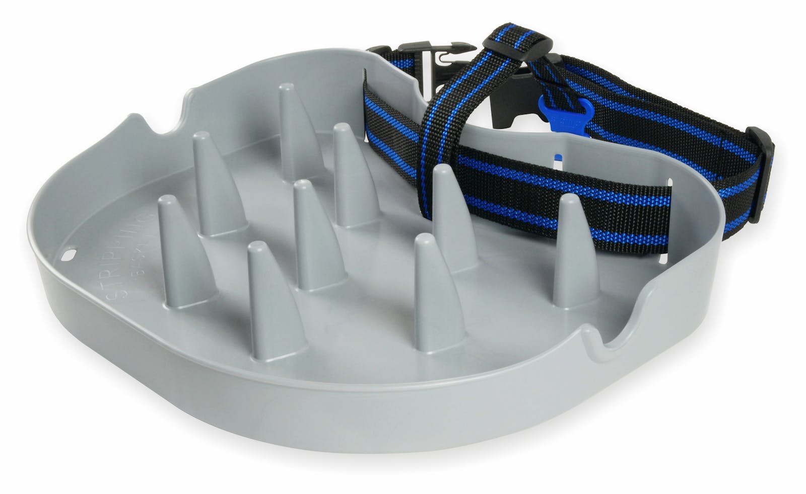 Stripping basket, made from high resistance material, can be positioned quickly both to the waist and to the leg thanks to two quick release belts. Its nine anti tangle cones have a special shark fin shape that allows the line to slip off easily during the cast. Equipped with grooves to hold the rod.