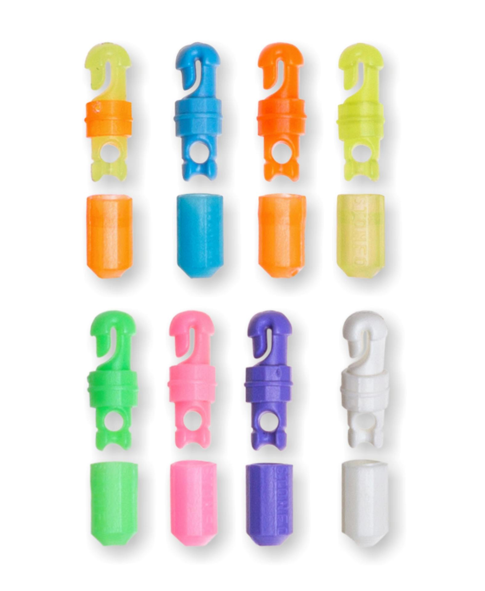 Colours: bicolour - blue - orange - yellow - green - pink - purple - white.