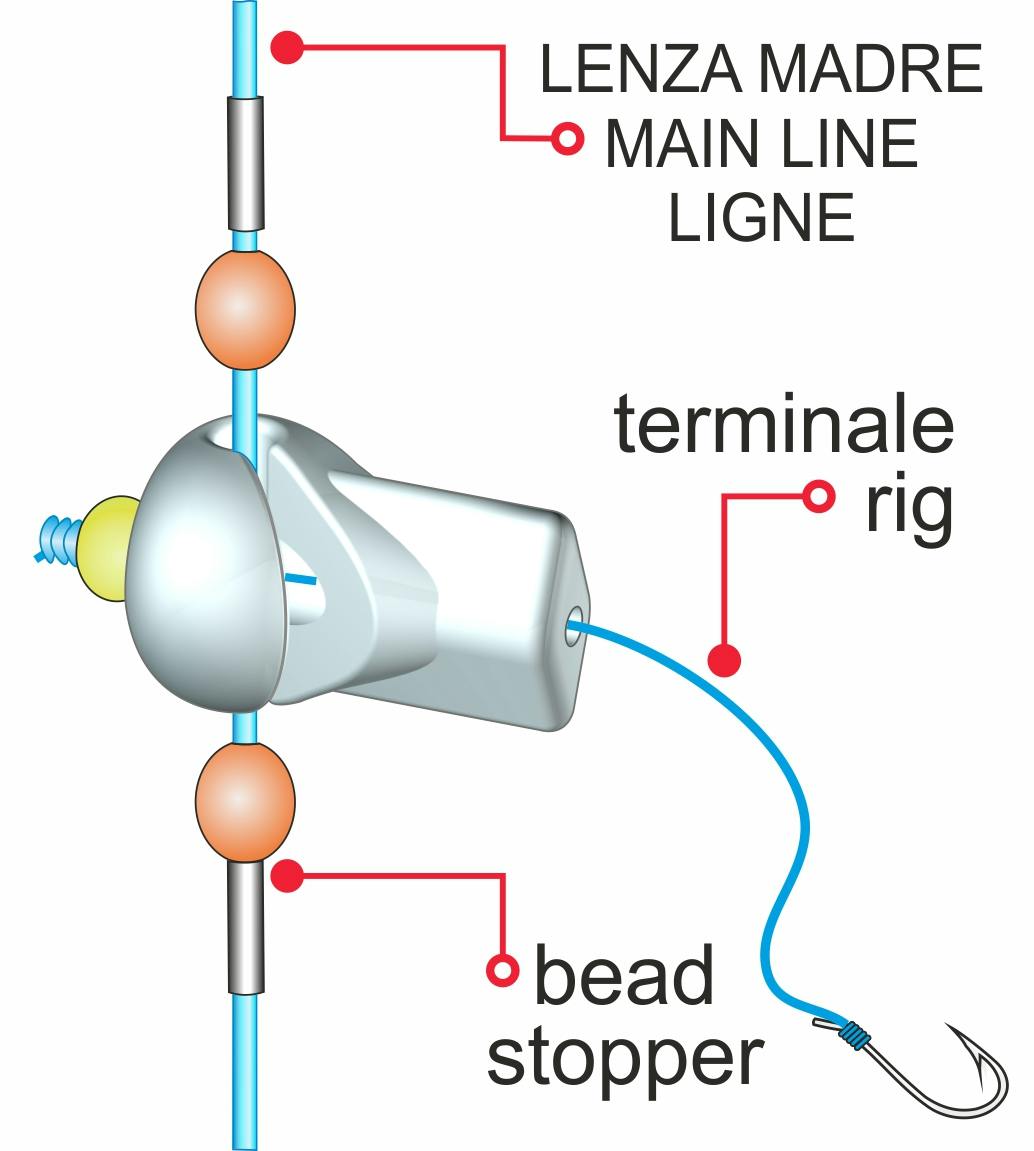 Perline per l’aggancio rapido dei finali alla lenza madre. Esse hanno un foro per il terminale e una traccia trasversale in cui, con una certa pressione, viene inserita la lenza madre. La loro speciale forma rende più semplice l’operazione di aggancio-sgancio. Prodotte in materiale resistentissimo trasparente.