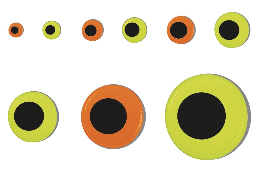 Occhi adesivi lenticolari fluorescenti ottimi per la costruzione e personalizzazione di esche artificiali.