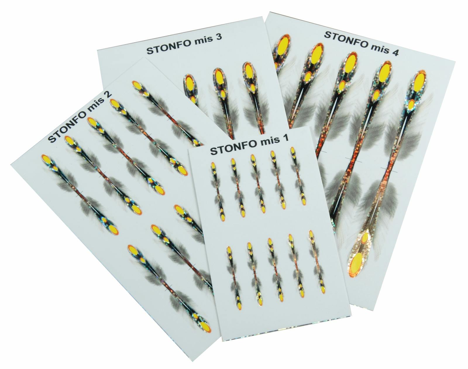 Imitazioni fantasia delle piume del gallo della giungla prodotte in quattro misure. Sono stampate su pellicola sintetica adesiva ad alta resistenza con effetto olografico. Ogni piuma ha il profilo pretagliato pronta all’uso. Sono di grande effetto nella costruzione di streamers, mosche da salmone, artificiali da mare, piccoli terrestrials etc.etc.