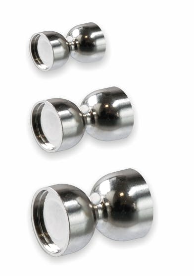Testine in ottone nichelato con incavo per l’applicazione di occhi e fresatura centrale per agevolare il montaggio sull’amo.