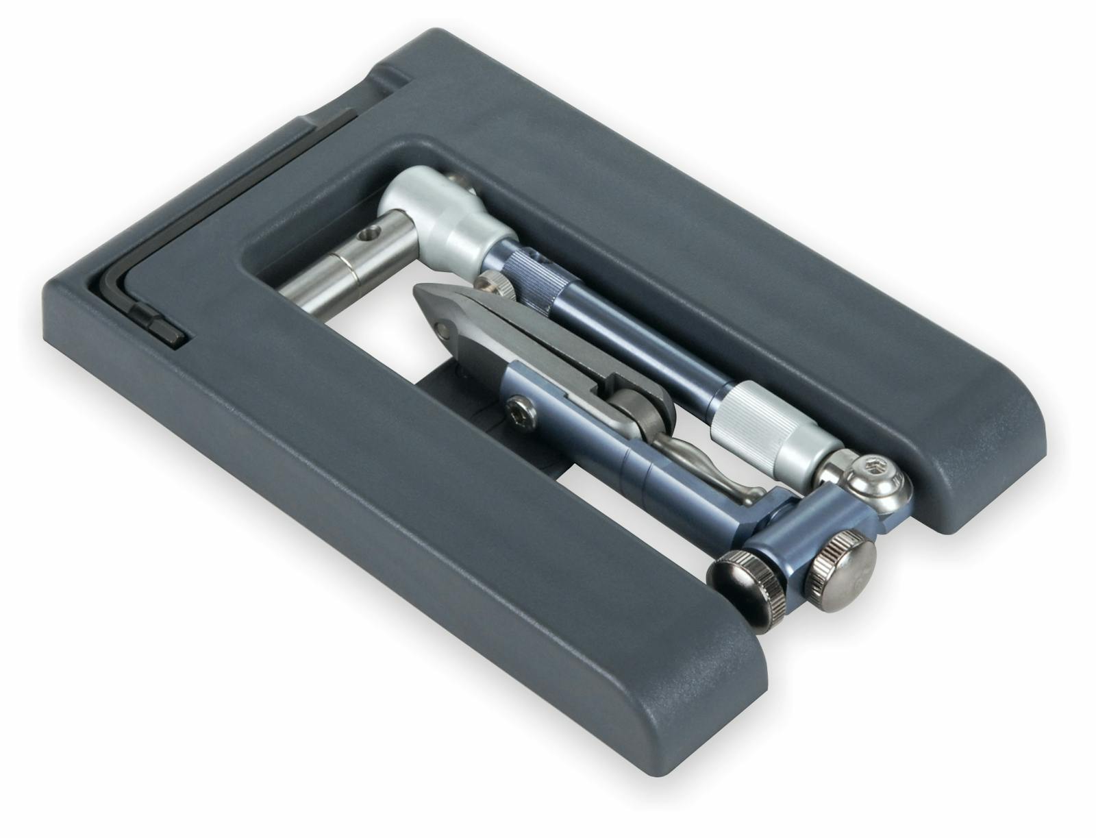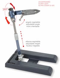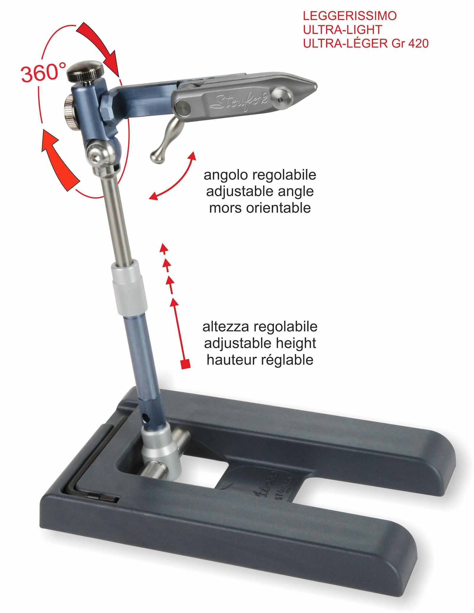 Travel vise for tying flies and streamers. Thanks to its special design and to a series of articulated joints it can be folded and placed in a special box of cm 15X10X2 without disassembling any piece. The accurate machining and the choice of materials provide exceptional performance to this small vise. The Airone uses the same efficient interchangeable jaw of Elite vise. The head has adjustable angle, 360° rotary action and adjustable height. The rotary tension is adjustable, with locking position at any angle. Suitable for left-handers. Supplied with allen key and instruction manual.
