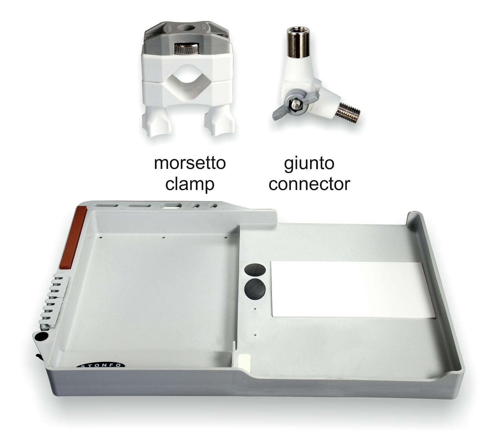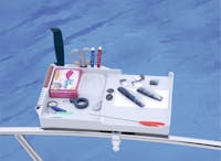 Bait station designed to meet the many needs of fisherman. Its structure in durable plastic is perfectly rounded and has no sharp edges. The compartment can hold various bait boxes or tools in a stable position. Other important features make this bait tray a well equipped working station for every kind of fishing. Dimension 39x28 cm. Supplied with clamp and angle lock connector for fixing on the tripod.