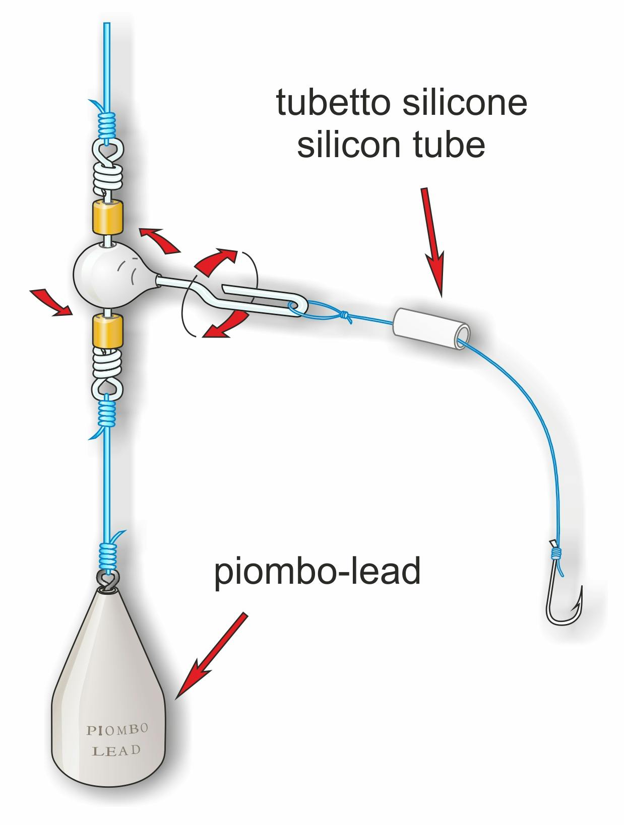 Ideal for deep fishing. Rotating freedom and derivation tube reduce any possibility of entanglement. Thanks to its excellent resistance you can use a steel wire rig.