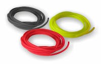 Fluorescent soft rubber tubing in 25 metres coil. Colours: red, yellow, black.