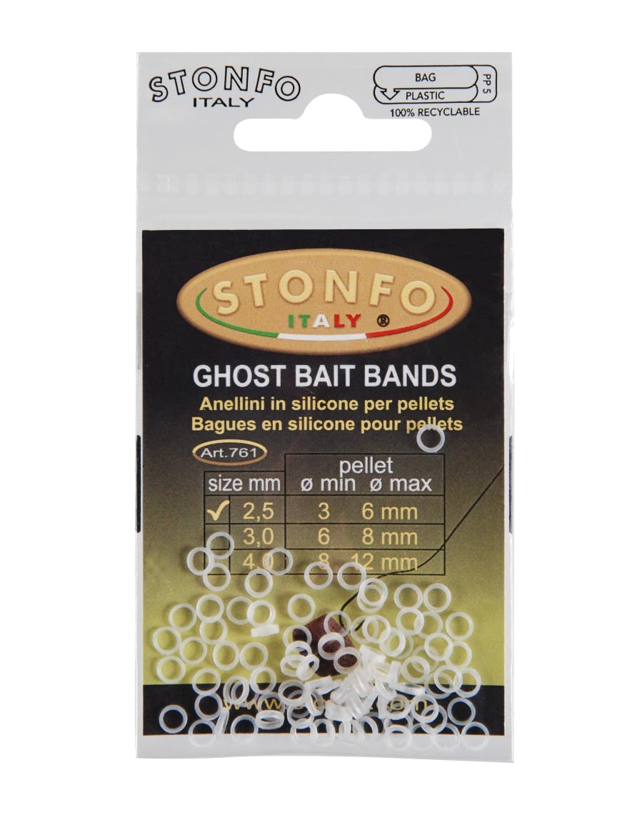 Thin bands in pure silicone ideal for pellets. Thanks to their small dimensions and natural color the bait will be more attractive. They guarantee an excellent grip on the pellet and exceptional breaking strength.