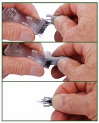 Simple and useful accessory designed to bring together in a compact bunch hair and feather fibers. Hair Compactor can be used with various kinds of dubbing hair clips.