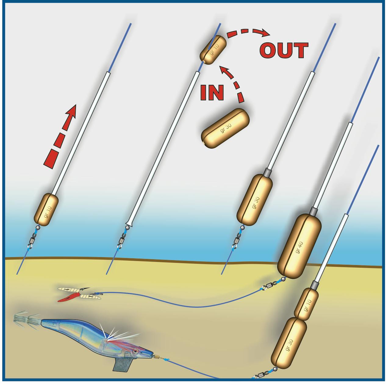 Interchangeable weights for every kind of fishing. The anti-tangle tube can hold two weights together to double the grams.