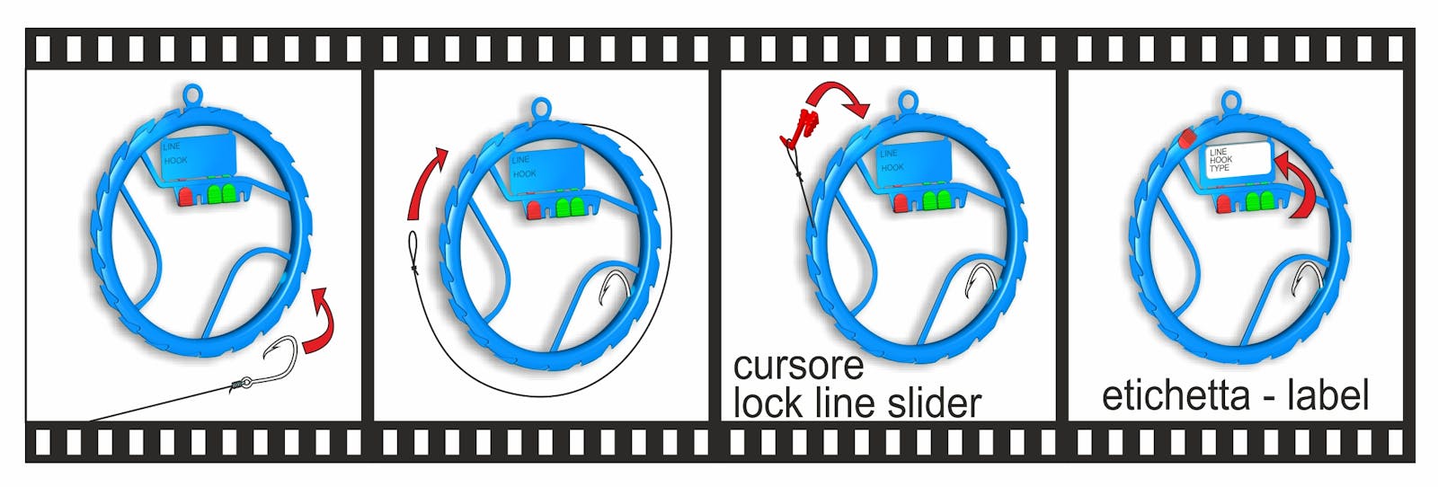 Lure and trace holder supplied with special lock line sliders. Available in two different sizes.