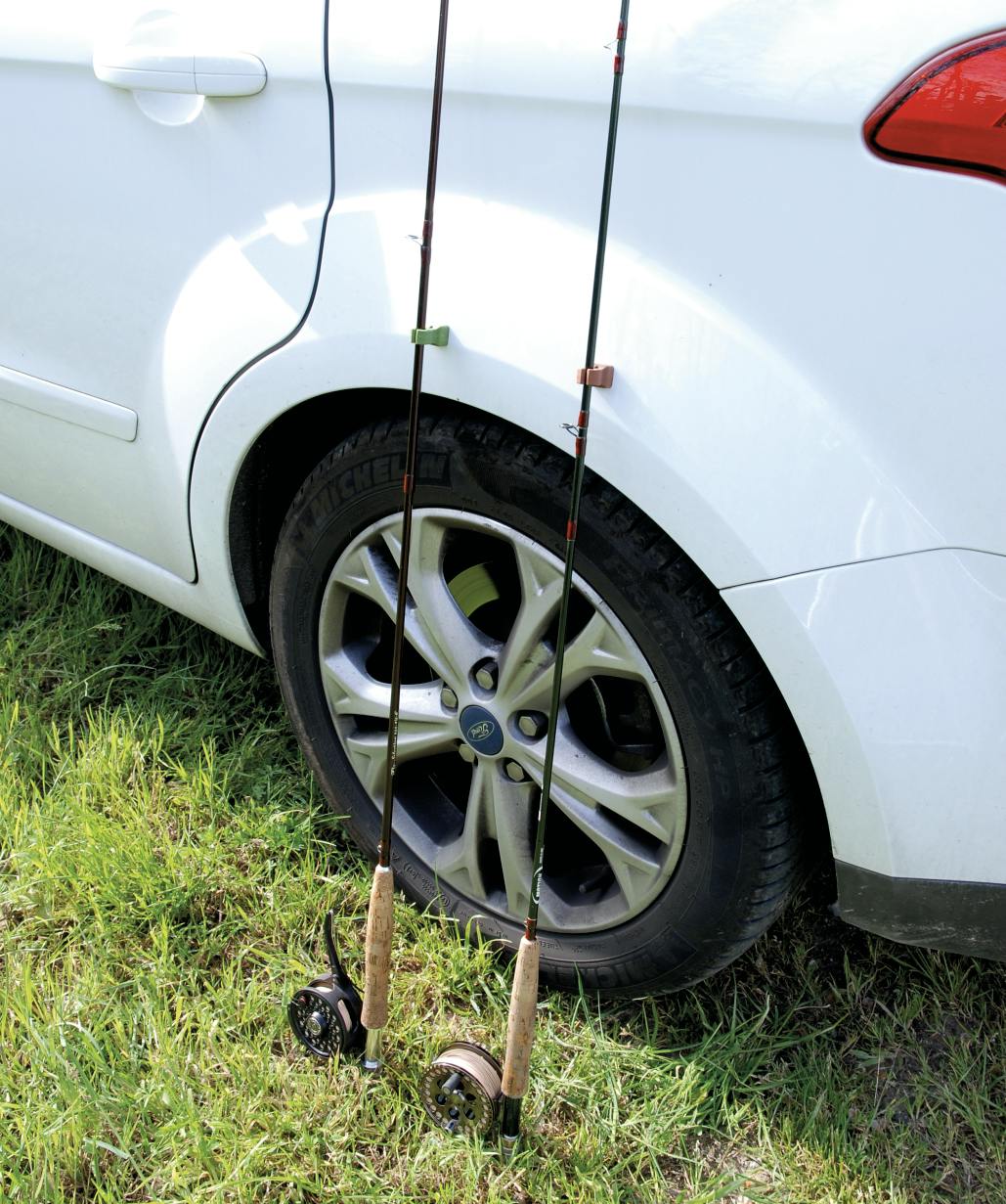 Small soft rubber accessory with a magnet inside, it holds the fishing rod on the car or any metallic surface. Very useful to keep fishing rod in a safe and secure position while preparing the fishing equipment.