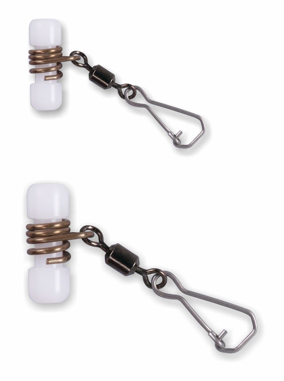 Very strong running connector, ideal for heavy feeders and leads. The swivel and the snap are joined to a rotating stainless steel spring that works as a shock absorber to prevent breakages. 2 sizes.