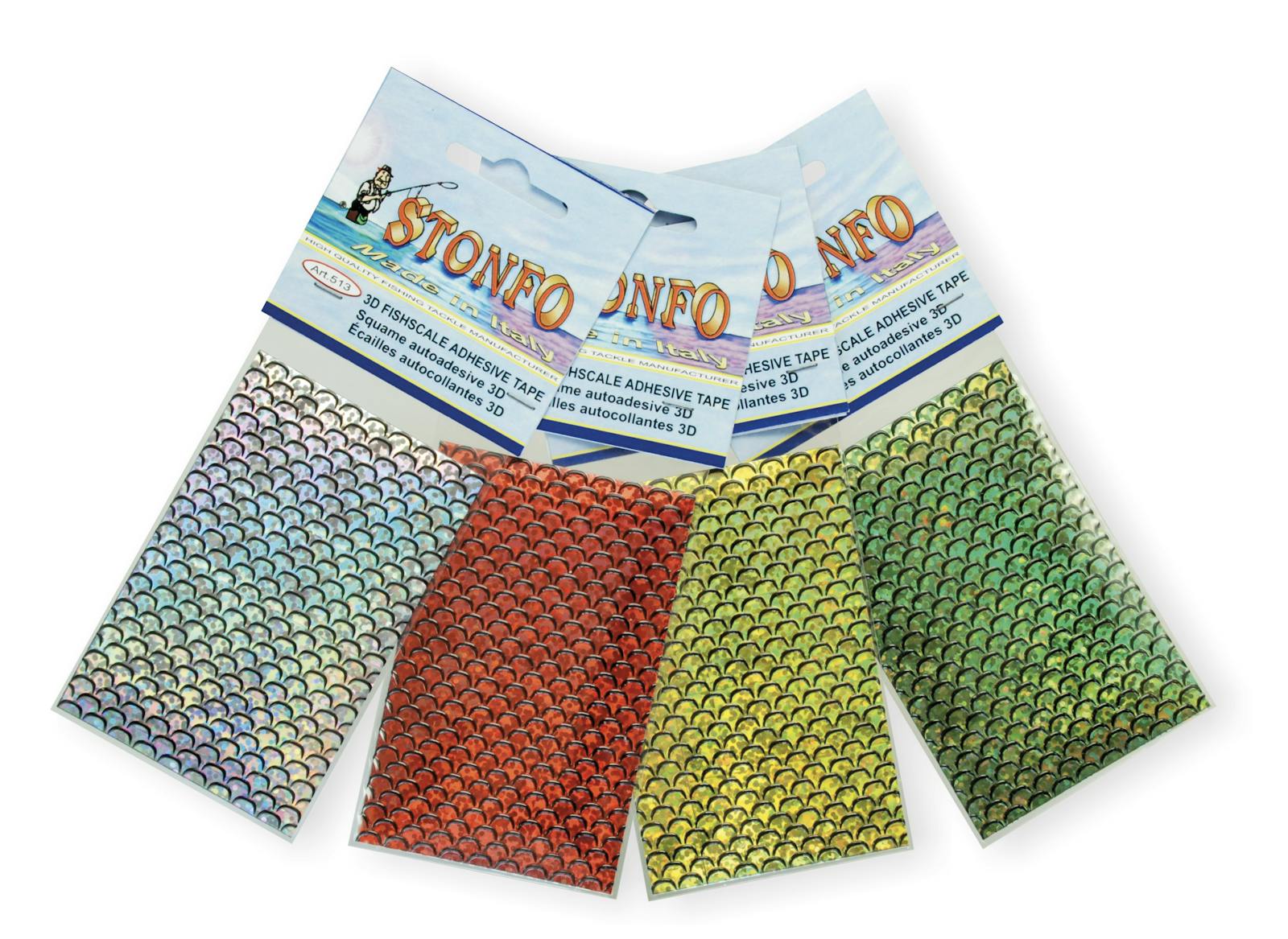 Film adesivo olografico con squame in rilievo per la personalizzazione di esche artificiali. Prodotta in 2 misure.