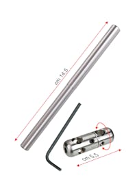 Giunto in acciaio inox con regolazione angolare. La confezione include 1 giunto, 1 asta di estensione lunga 145 mm e 1 chiave a brugola.