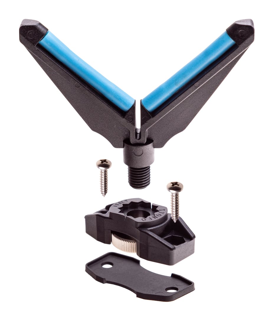 Appoggia canna da barca in materiale resistente agli urti e con inserti in gomma. Questo modello si applica direttamente alla murata della barca per mezzo di una placchetta con filettatura standard.
