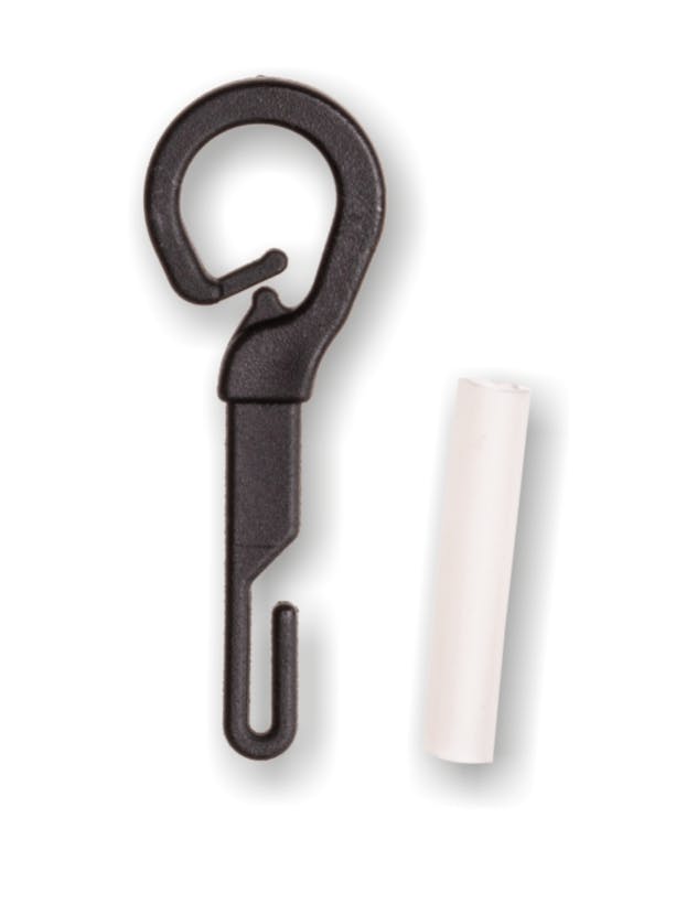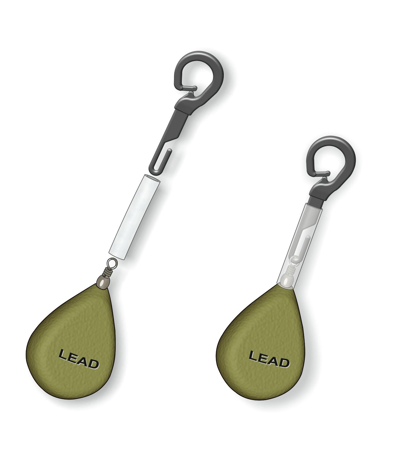 Gancetti per piombo tendifilo. Prodotti in materiale molto resistente consentono la massima scorrevolezza sul filo. Forniti completi di tubetti in silicone trasparente per una rapida intercambiabilità del piombo.