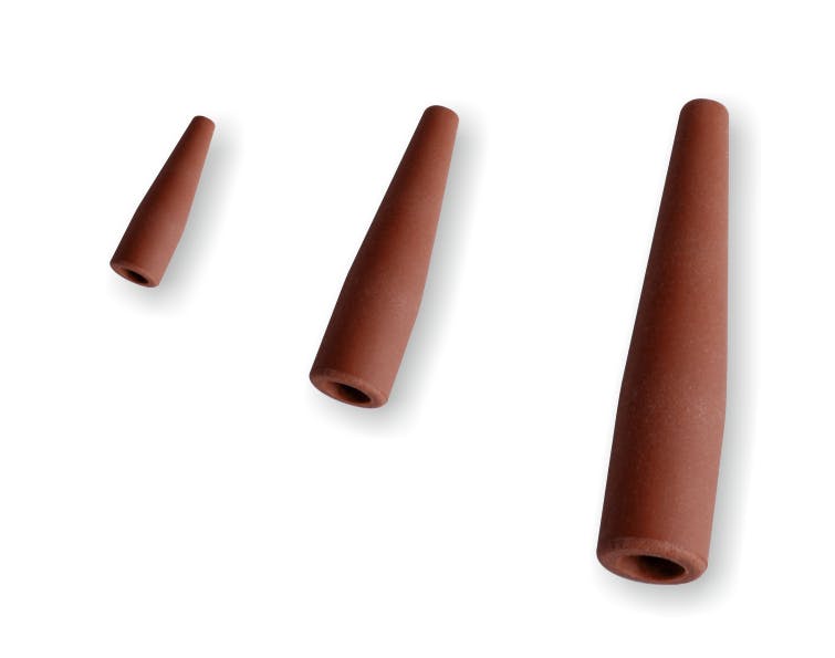 Conetti in gomma coprinodo. Ottimi per il surf-casting ed il carp fishing riducono il rischio di aggrovigliamenti ed evitano l’aggancio di alghe sul nodo. Prodotti in tre diverse misure.