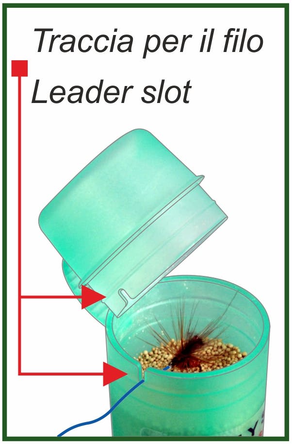 Microsfere ad alto assorbimento per asciugare rapidamente la mosca. Basta inserire la mosca legata al filo all’ interno del flaconcino, chiudere il coperchio e scuotere energicamente più volte. Il flaconcino si apre facilmente con una sola mano.