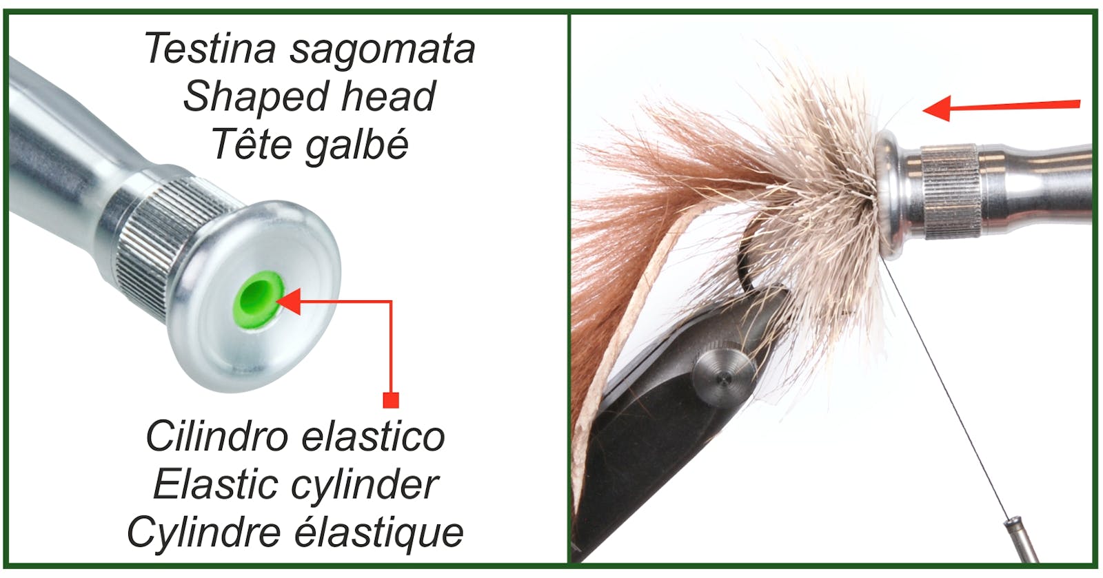 Questo semplice accessorio rende più facile le operazioni di montaggio di mosche, streamers, poppers ed altro compattando il pelo sia naturale che sintetico. Le due testine di diversa grandezza sono munite al loro interno di un cilindretto elastico per accogliere ami di qualsiasi dimensione. Fornito di due cilindretti elastici di ricambio.