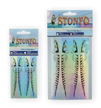 Disegno di pesciolino stampato in rilievo su supporto olografico adesivo argentato utile per la personalizzazione di esche artificiali.