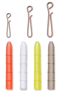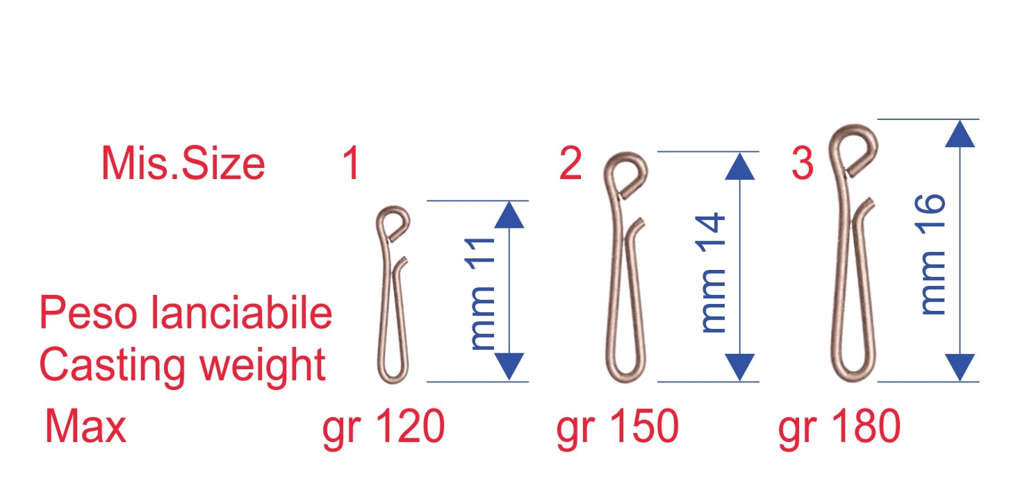Attacco rapido in acciaio inox di forma molto sottile per agevolarne il passaggio negli anelli della canna. Ideale per il collegamento del trave allo shock leader o del piombo terminale. Fornito con speciali tubetti di forma cilindrica, con spessore sottile ed estremità conica priva di appigli. I vari colori permettono il mimetismo od una perfetta visibilità dell’attacco. I tubetti inoltre hanno dei micro rilievi per agevolarne la presa. Prodotto in tre misure di diversa potenza.