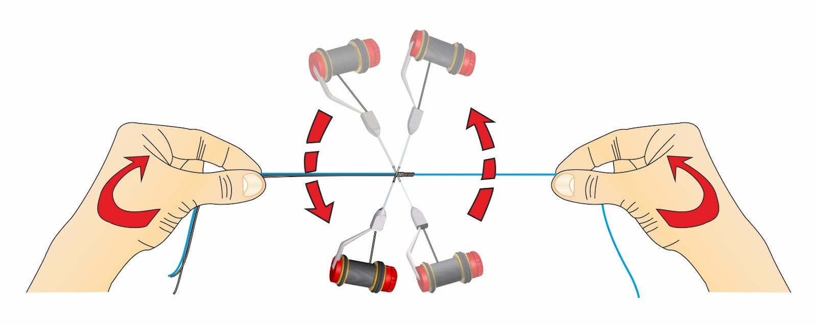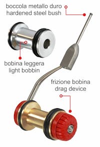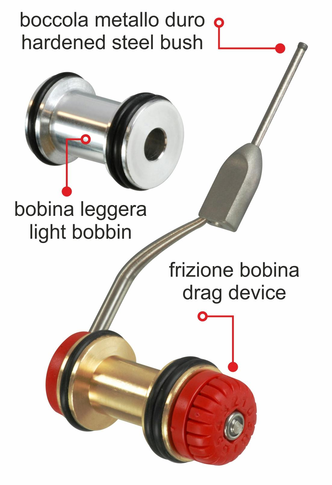 Bobinatore speciale per la realizzazione del nodo tipo PR ed impiombature “serving” . Costruito in acciaio inox ergonomico e compatto munito di una precisa frizione che permette un agevole funzionamento. Il tubetto scorrifilo ha alla sua estremità una boccola in metallo duro resistentissima all’usura e agli urti. Munito di due bobine di diverso peso che permettono il tensionamento ideale della legatura. Ciascuna bobina ha degli anelli in gomma fermafilo che, in caso di caduta del Rotoknotter, servono ad evitare danni alla barca. Fornito completo di istruzioni per l’uso.