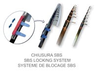 Salvanelli in materiale infrangibile trasparente con sistema di bloccaggio rapido “SBS”. Modello adatto per canne inglesi telescopiche, canne trota lago e bolognesi . Brevettato.