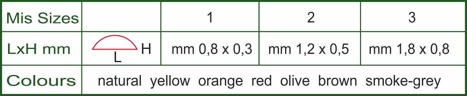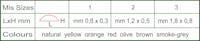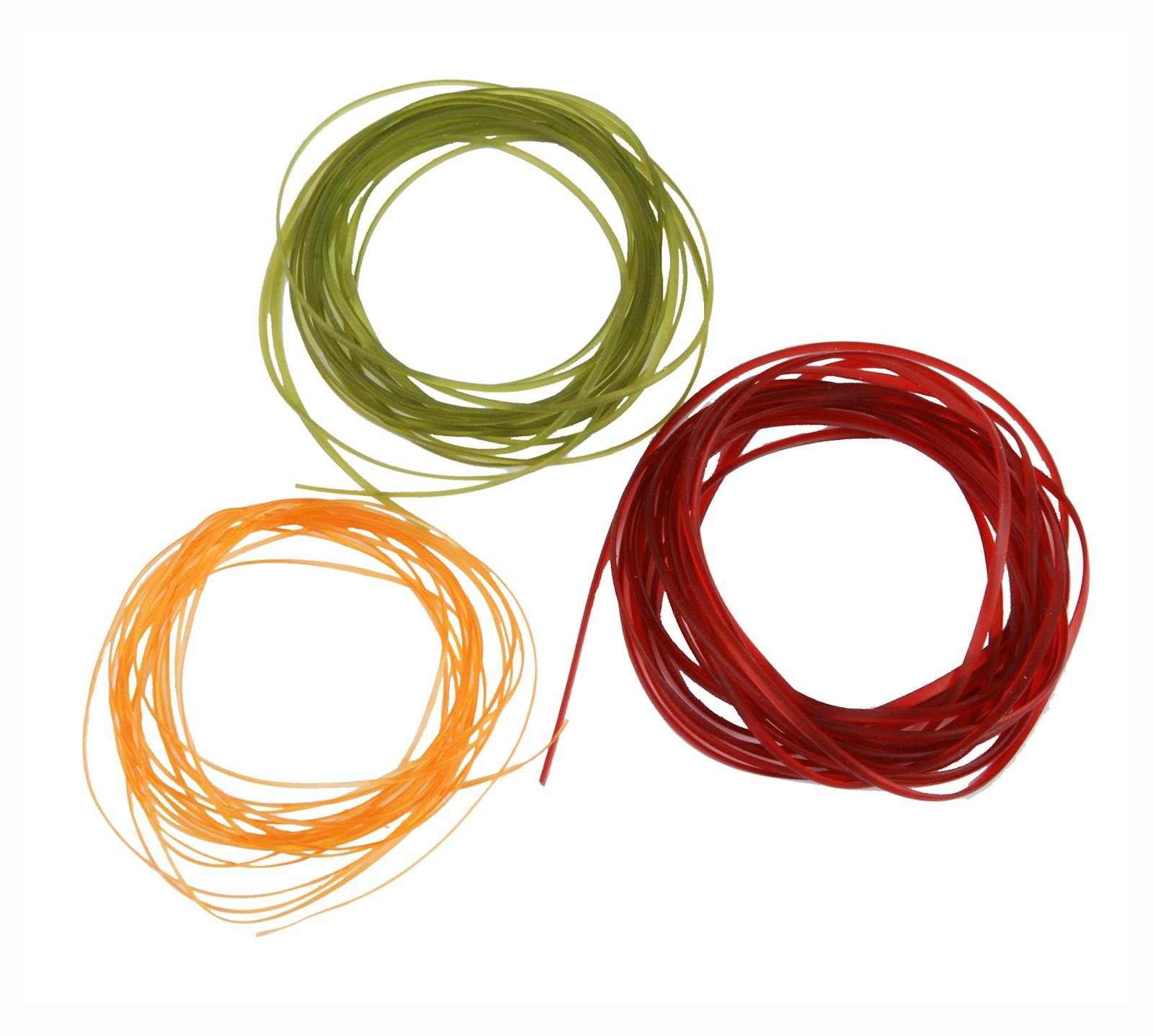 Materiale traslucido ed elastico a sezione semi-ovale, ideale per la realizzazione di corpi segmentati di ninfe. Disponibile in 3 misure e 7 differenti colori.