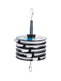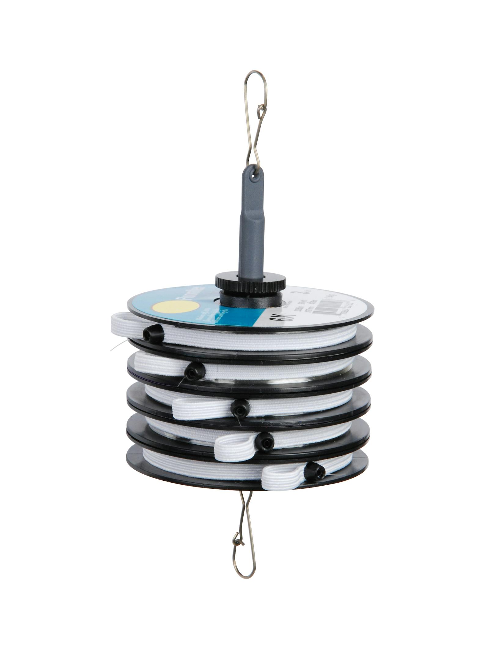 Utile accessorio per tenere insieme e pronte all’uso varie bobine di filo. Appendibile al gilet da pesca. Fornito completo di cinque speciali elastici fermafilo muniti di boccola autolubrificante e linguetta per agevolare sia l’avvolgimento che l’estrazione del filo. Bobine non incluse.