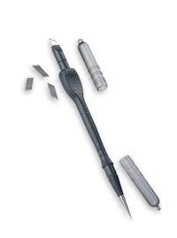 Taglierino di precisione indispensabile per la finitura delle vostre mosche. All’altra estremità l’utensile è munito di una corta ed acuminata punta in acciaio inox utile durante la costruzione. Fornito di tre lame di ricambio.
